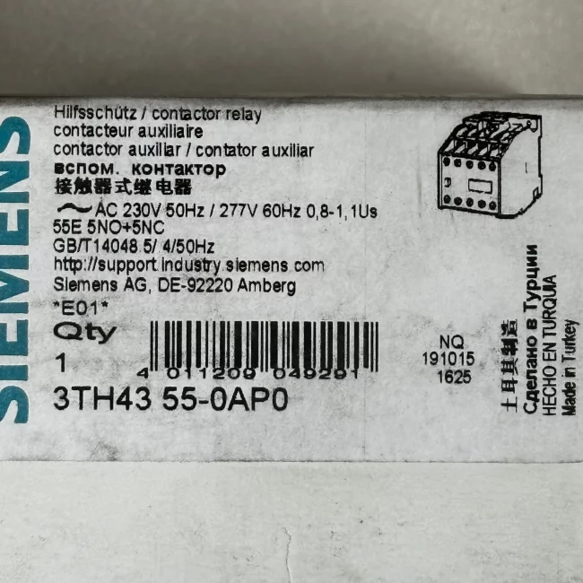 The Siemens 3TH43 55-0AP0 is an auxiliary contact relay designed for reliable switching and control in industrial automation systems. Its high-quality build ensures durability and performance in demanding environments.